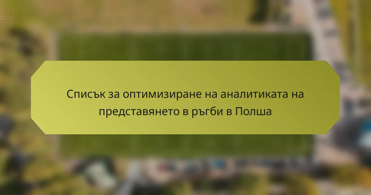 Ръгби отборите в Полша могат да подобрят аналитиката си за представяне, като ясно определят цели, използват напреднали софтуерни инструменти и насърчават комуникацията с играчите. Този структуриран подход позволява на отборите да вземат решения, основани на данни, които подобряват общото представяне.