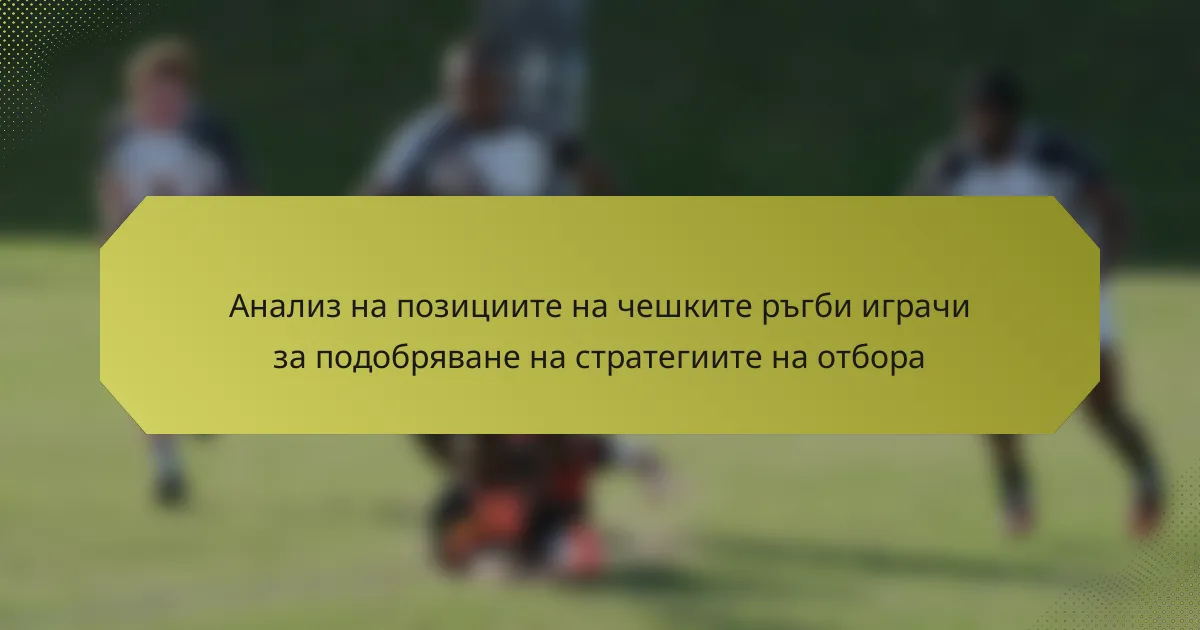 Чешкият ръгби демонстрира разнообразие от позиции на играчите, като всяка играе важна роля в оформянето на стратегията и динамиката на отбора. Доброто разбиране на тези позиции, заедно с ключовите показатели за представяне, позволява на отборите да оптимизират играта си и да адаптират тактиките си за подобрена ефективност на терена.