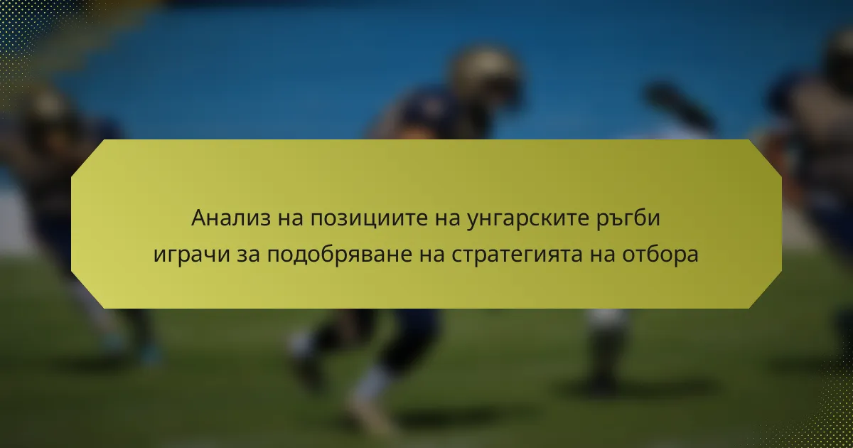 В унгарския ръгби разбирането на позициите на играчите е от съществено значение за разработването на ефективна стратегия на отбора. Нападателите и защитниците имат различни роли, които влияят както на физическата игра, така и на възможностите за отбелязване на точки, което прави анализирането на техните специфични умения и характеристики задължително. Фокусирайки се върху тези динамики, отборите могат да подобрят представянето си и да оптимизират общия си игрови план.