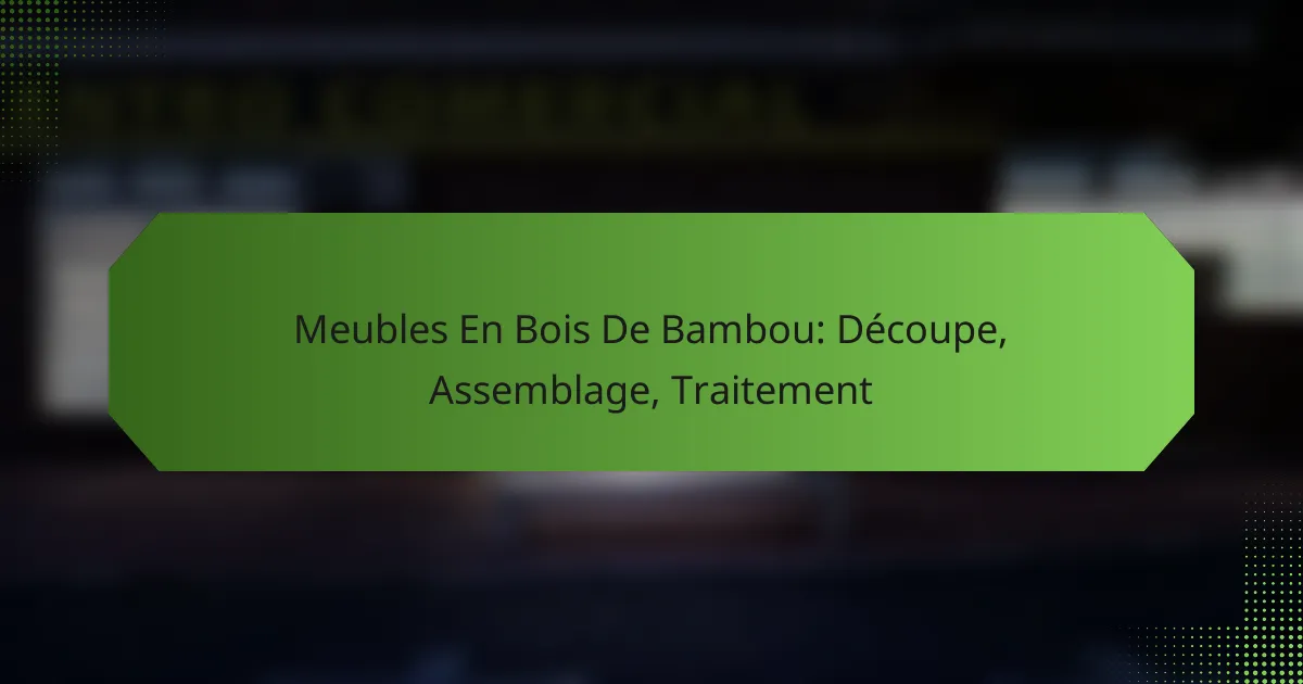 Les méthodes d’assemblage des meubles en bois de bambou incluent plusieurs techniques qui garantissent la solidité et la durabilité des pièces. Les joints, les outils et les étapes d’assemblage sont essentiels pour créer des meubles robustes et esthétiques.