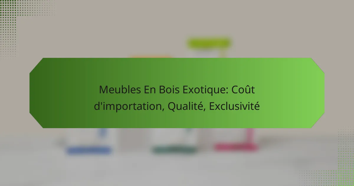 Les meubles en bois exotique sont prisés pour leur beauté et leur qualité, mais leur coût d’importation peut varier considérablement en fonction de divers facteurs. Il est crucial d’évaluer la qualité des matériaux et des normes de fabrication afin de garantir un investissement judicieux. En optant pour ces pièces uniques, vous apportez une touche d’originalité et d’élégance à votre intérieur.