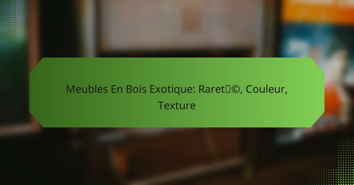 Pour choisir des meubles en bois exotique, il est essentiel de considérer la rareté, la couleur et la texture du bois. Ces éléments influencent non seulement l’esthétique, mais aussi la durabilité et l’entretien des meubles.