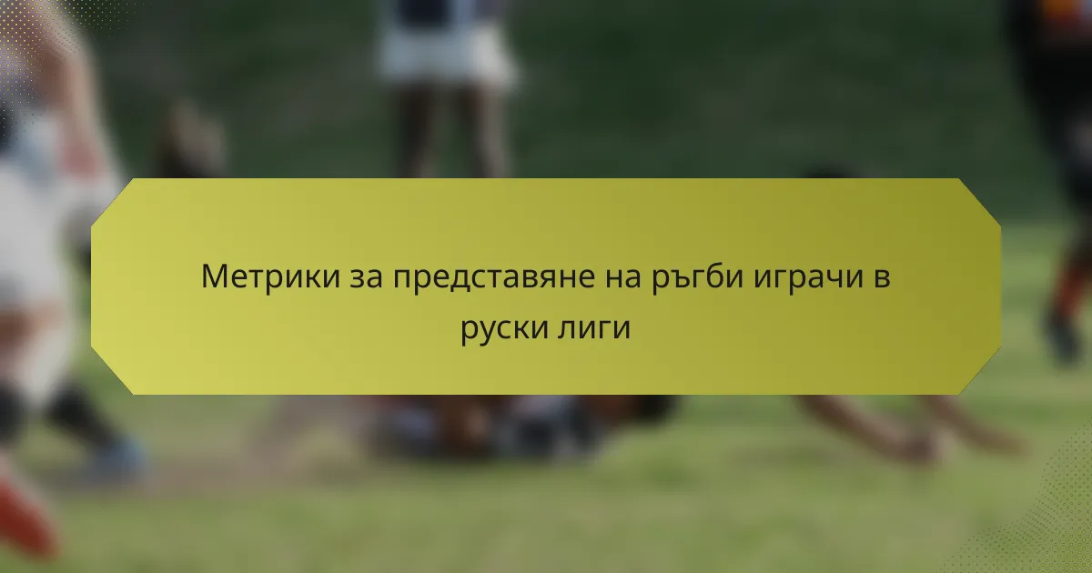 Ключовите показатели за представяне на ръгби играчите в руските лиги включват физическа подготовка, технически умения, тактическа осведоменост, влияние върху играта и здравето на играчите. Тези показатели помагат за оценка на общата ефективност на играча и приноса му за отбора, насочвайки усилията за тренировки и развитие.