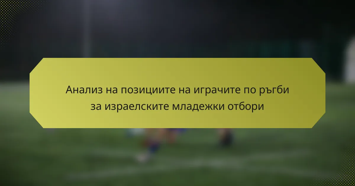 Ключовите позиции на играчите в ръгби за младежки отбори включват нападатели и защитници, всеки с различни роли и отговорности. Разбирането на тези позиции помага на треньорите и играчите да оптимизират представянето на отбора и индивидуалното развитие на уменията.