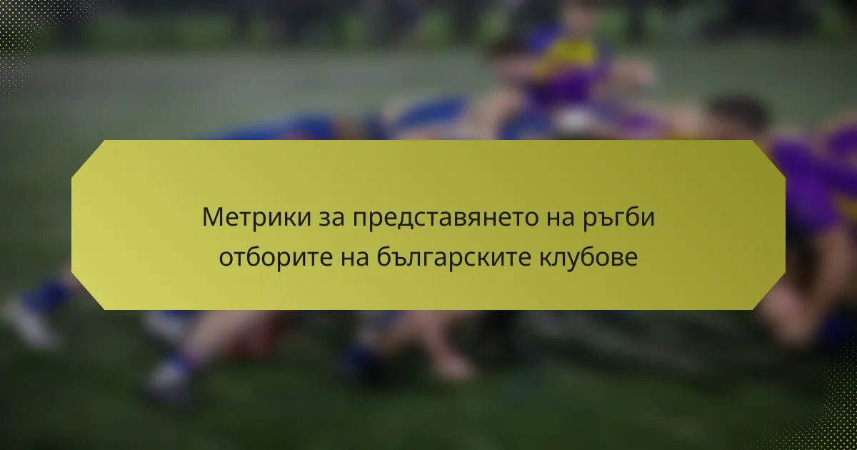 Ключовите показатели за ефективност на ръгби отборите в България включват резултати от мачовете, статистики на играчите, отборна сплотеност, физическа подготовка и ефективност на треньорството. Тези показатели помагат на клубовете да оценят своите силни и слаби страни, насочвайки подобрения и стратегическо планиране.