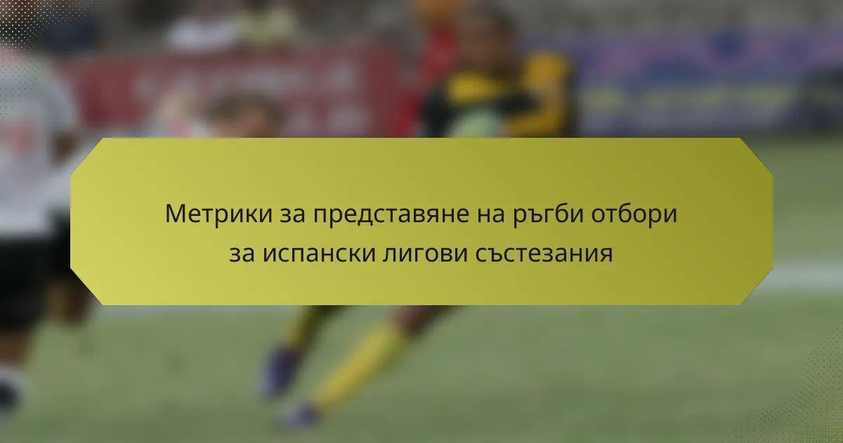 Ключовите метрики за представяне на ръгби отборите в испанските лиги включват статистики от мачовете, статистики на играчите, статистики на отбора, сравнителен анализ и исторически тенденции в представянето. Тези метрики предоставят информация за ефективността на отбора, индивидуалните приноси и общата конкурентоспособност в лигата.