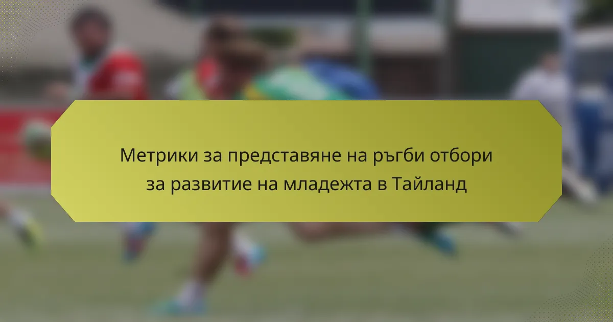 Ключовите показатели за представяне на ръгби отборите в младежкото развитие в Тайланд включват съотношение победи-загуби, метрики за развитие на играчите, сплотеност на отбора, стандарти за физическа подготовка и проценти на наранявания. Тези метрики помагат за оценка на общата ефективност на отбора и насочват тренировъчните стратегии за младежките играчи.