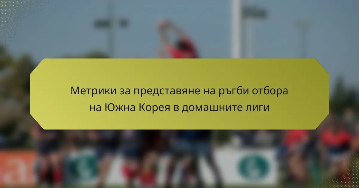 Ключовите показатели за представяне на ръгби отбора на Южна Корея в домашните лиги включват записи за победи и загуби, точки, отбелязани спрямо точки, допуснати, приноси на играчите, сплотеност на отбора и влиянието на контузиите върху общото представяне. Тези метрики предоставят цялостен поглед върху ефективността на отбора и областите за подобрение.